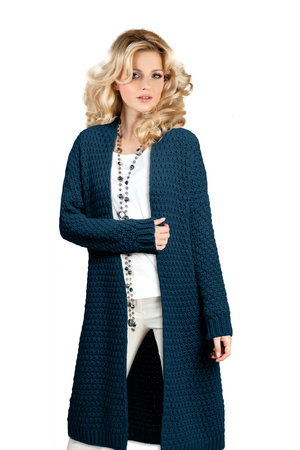 Mikos Damski sweter poncho z dzianiny kardigan 423 beżowy