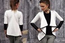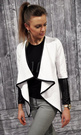 DAMEN TRENDY CARDIGAN STEPPJACKE Kunstlederärmel Asymmetrisch NEU S M L XL (184)
