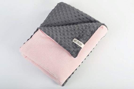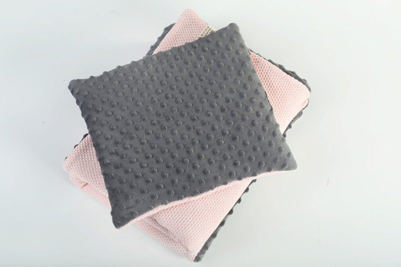 Mikos* Baumwolle und Minky| StrickDecke Kuscheldecke Krabbeldecke 75x100 mit Flaches Kissen: 30x30cm Hoch Qualität | Ideal als Kinderwagendecke 1002