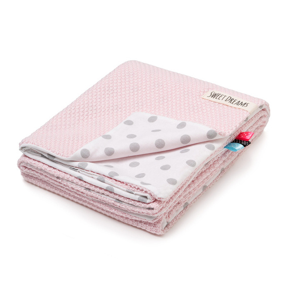 Babydecke Sommer Decke, Strickdecke ohne Füllung, 100% Baumwolle Baby Neugeborenen Junge Mädchen, Kuscheldecke Baumwolldecke Krabbeldecke für Kinderwagen weich 75x100 (1040) (Rosa/Graue Tupfen)