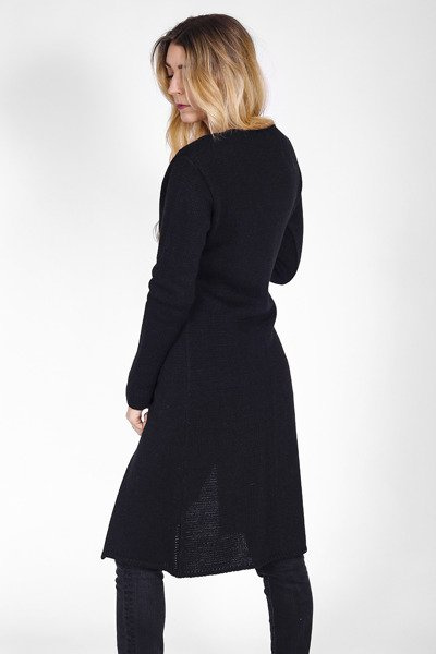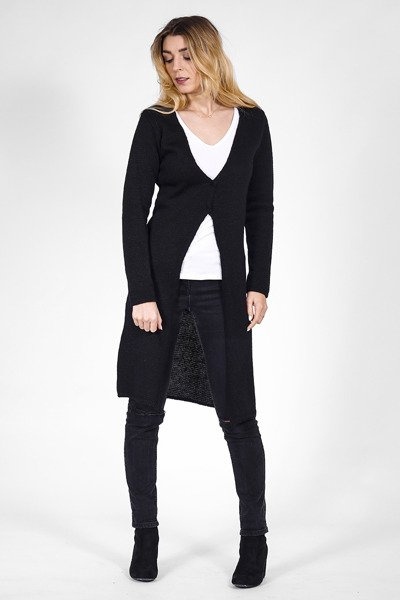 Offener Cardigan aus weicher Garne mit Druckknopfverschluss. Das moderne Design der Strickjacke bringt frischen Wind in die Garderobe. Die Jacke ist figurbetont gearbeitet und trägt sich dank ihrem Material superangenehm. In der Übergangszeit wird die Longstrickjacke einfach ganz locker über Shirts und Blusen getragen.
