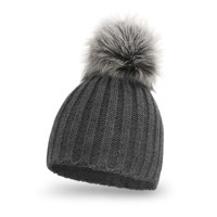 Superschöne, trendige Strickmütze mit grossem Fellbommel !