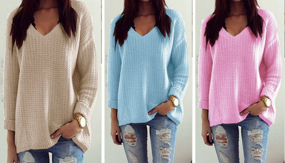 Luźny sweter damski w serek oversize