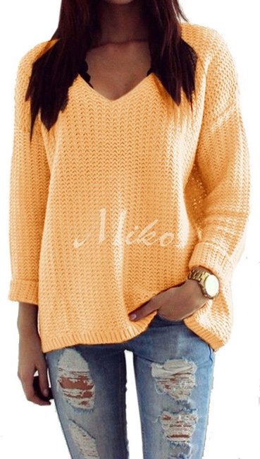 Mikos luźny sweter damski w serek V 627 morelowy