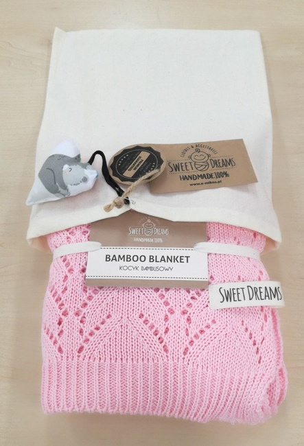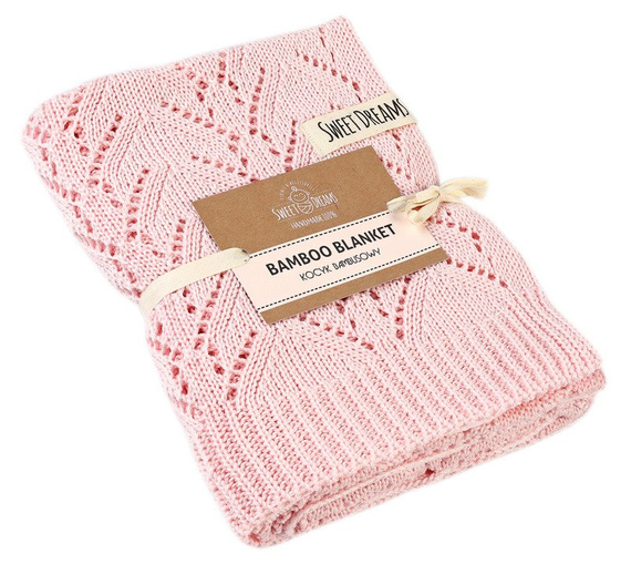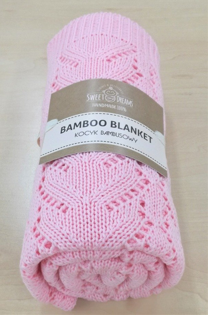 Mikos Kocyk bambusowy tkany dziecięcy dzianinowy dziergany 80x100cm. 1028 różowy