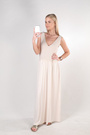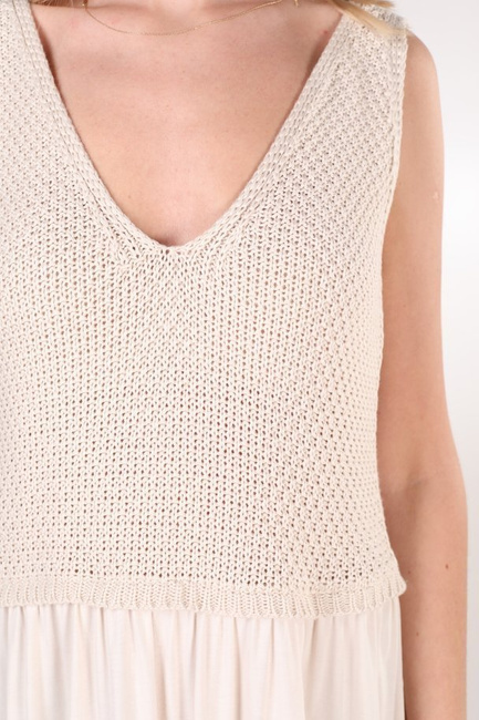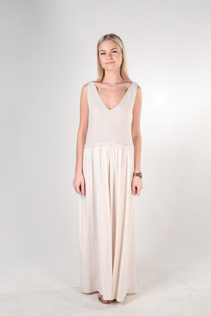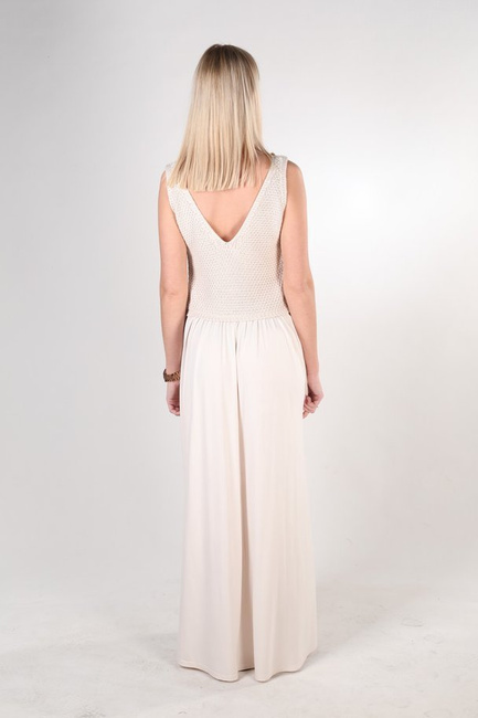 Mikos długa elegancka sukienka szydełkowa na ramiączka 380 beż