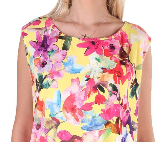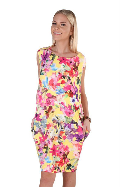 Sukienka z wiskozy z dodatkiem elastanu, kwiatowy print, prosty fason bez rękawów, głębszy dekolt na plecach.
