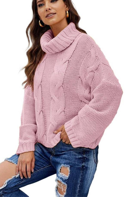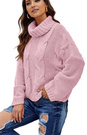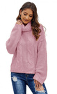 Mikos ciepły luźny sweter damski w warkocz z golfem 692 różowy