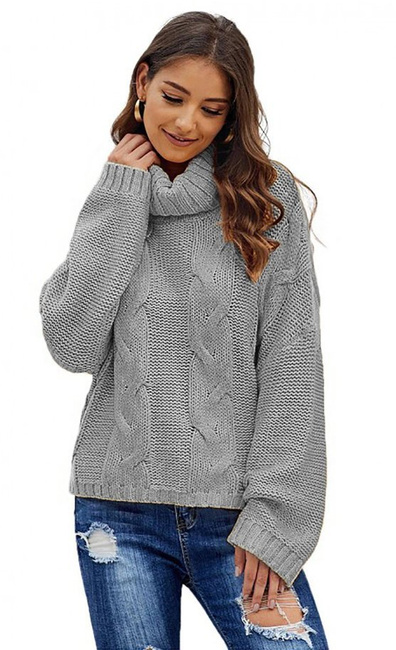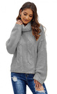 Mikos ciepły luźny sweter damski w warkocz z golfem 692 szary