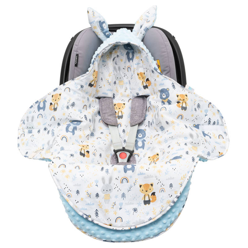Mikos otulacz do fotelika Kocyk becik rożek śpiworek z kapturem do fotelika niemowlęcego Minky bawełna 1037 NIEBIESKI
