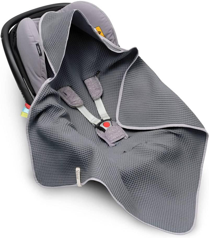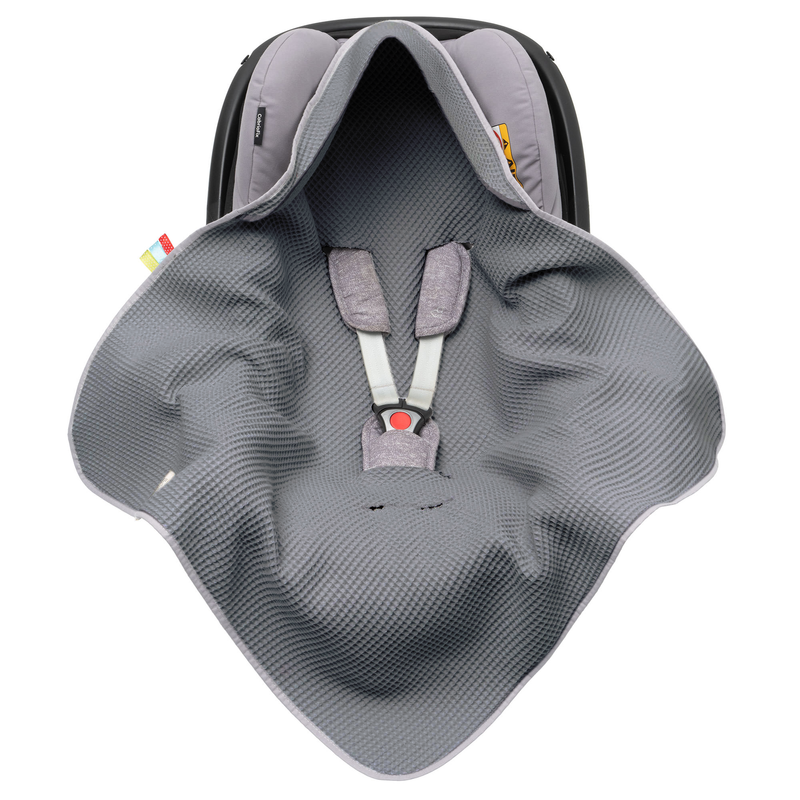 Mikos cienki Kocyk otulacz do fotelika samochodowego wiosna lato do auta samochodu wózka dziecięcego nosidełka Maxi Cosi różowy, beżowy, 3-punktowy pasek 1038 GRAFITOWY