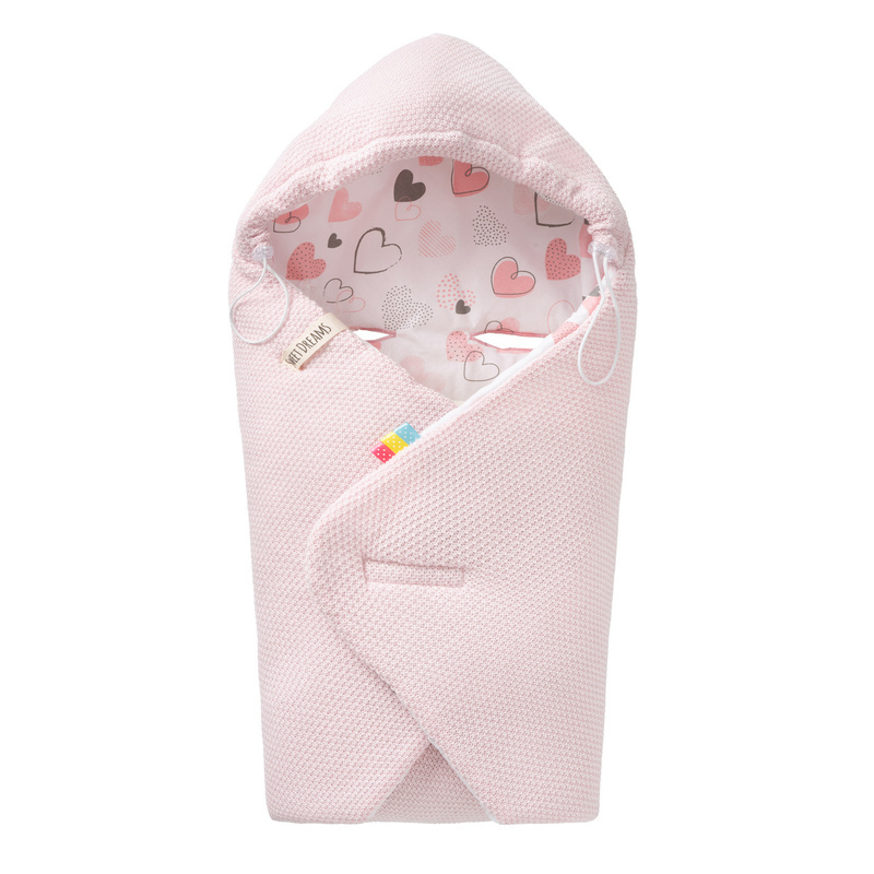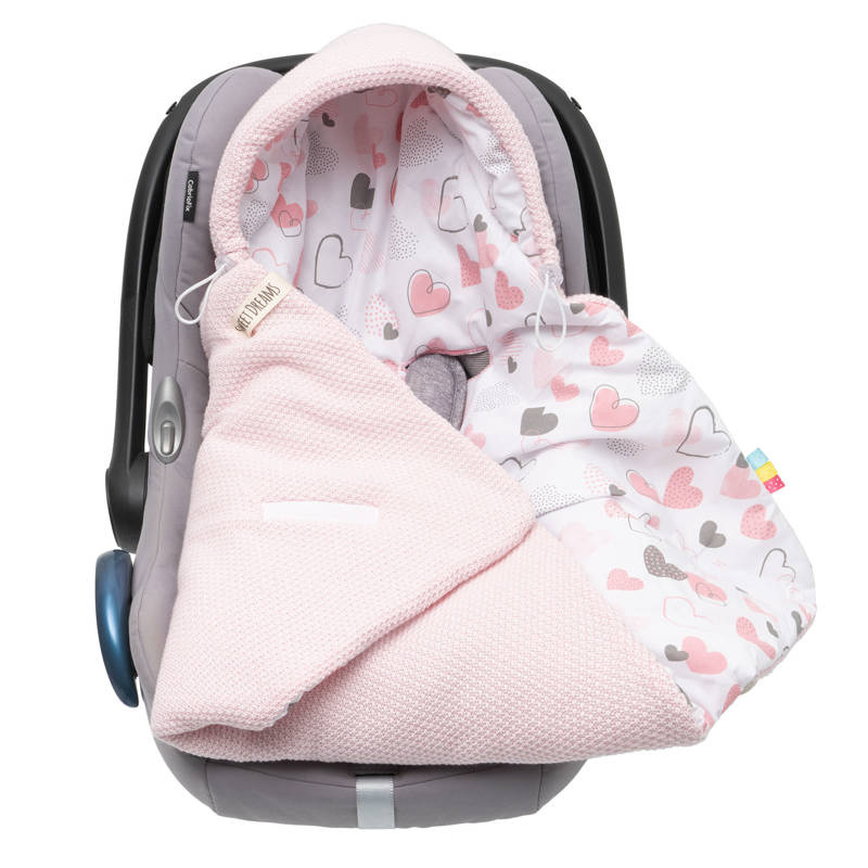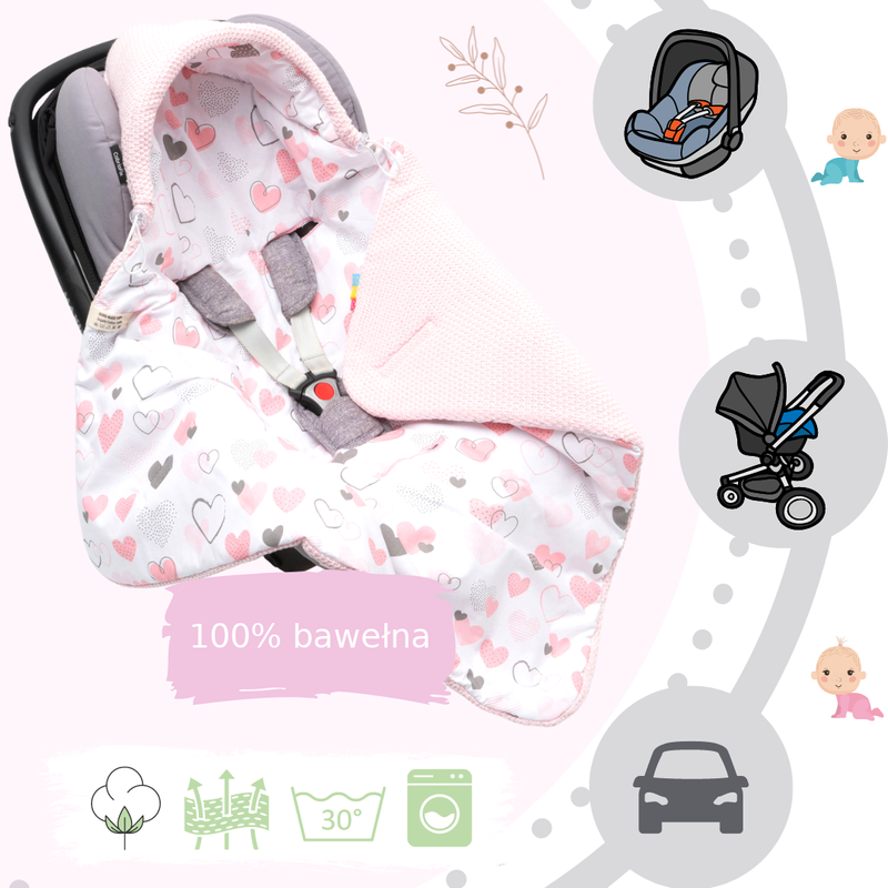 Mikos otulacz do fotelika Kocyk becik rożek niemowlęcy śpiworek z kapturem do fotelika samochodowego wózka nosidełka bawełna 1039 RÓŻ