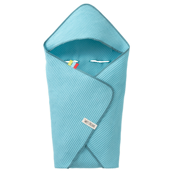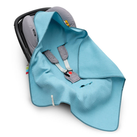 Mikos cienki letni Kocyk do fotelika Maxi Cosi wafel becik rożek śpiworek otulacz z kapturem do fotelika samochodowego nosidełka na lato 1038 TURKUS