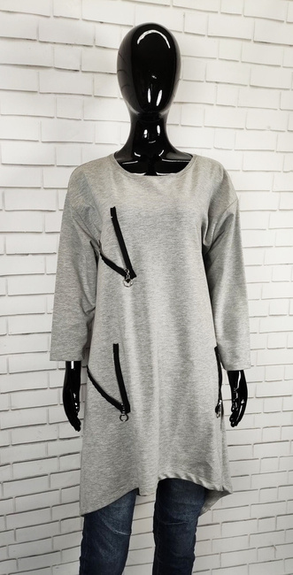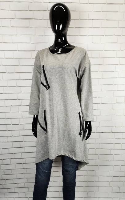 LaleLi Import Turcja Tunika sukienka szara dekoracyjne suwaki długi rękaw rozmiar uniwersalny