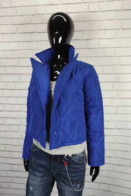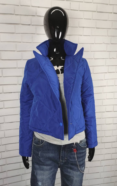 Krótka kurtka damska wiosenna zapinana na zatrzaski kolor chabrowy - import Włochy
