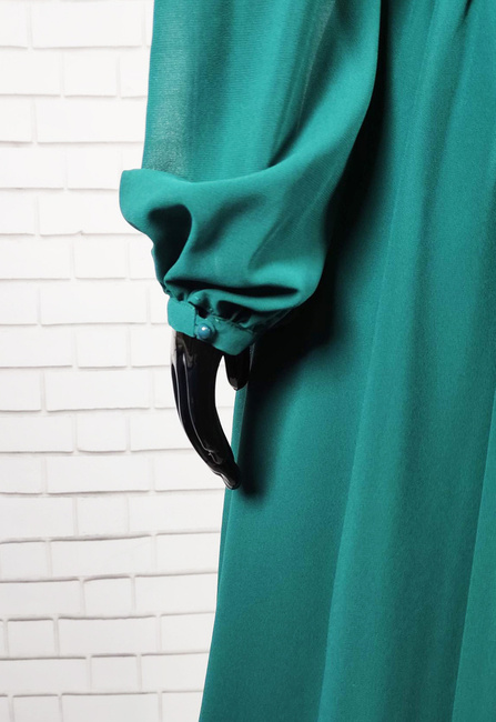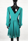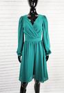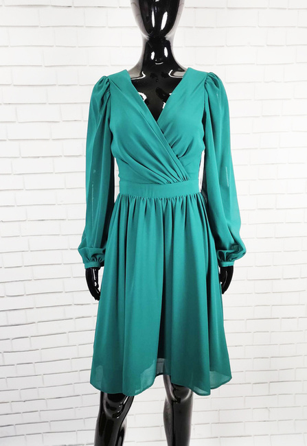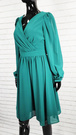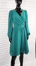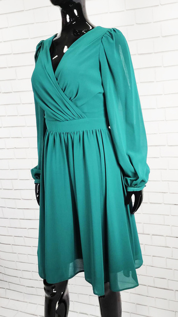 Modello sukienka z długi rękaw dekolt w serek zielona marszczona przed kolano suwak z tyłu elegancka na wesele rozmiar 38 40