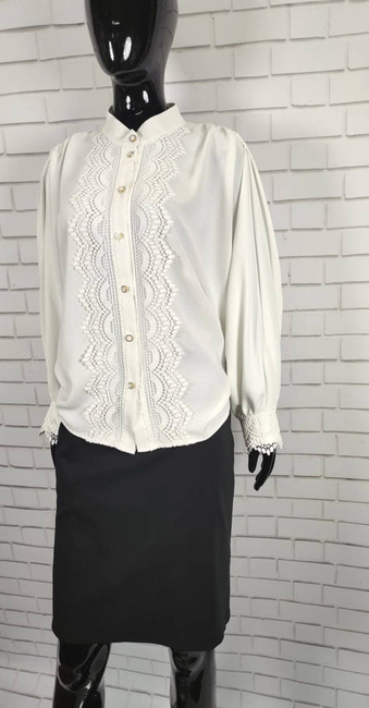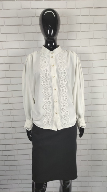 Cocomore bluzka biała ozdobiona koronką zapinana na guziki krój nietoperz elegancka wieczorowa zwiewna