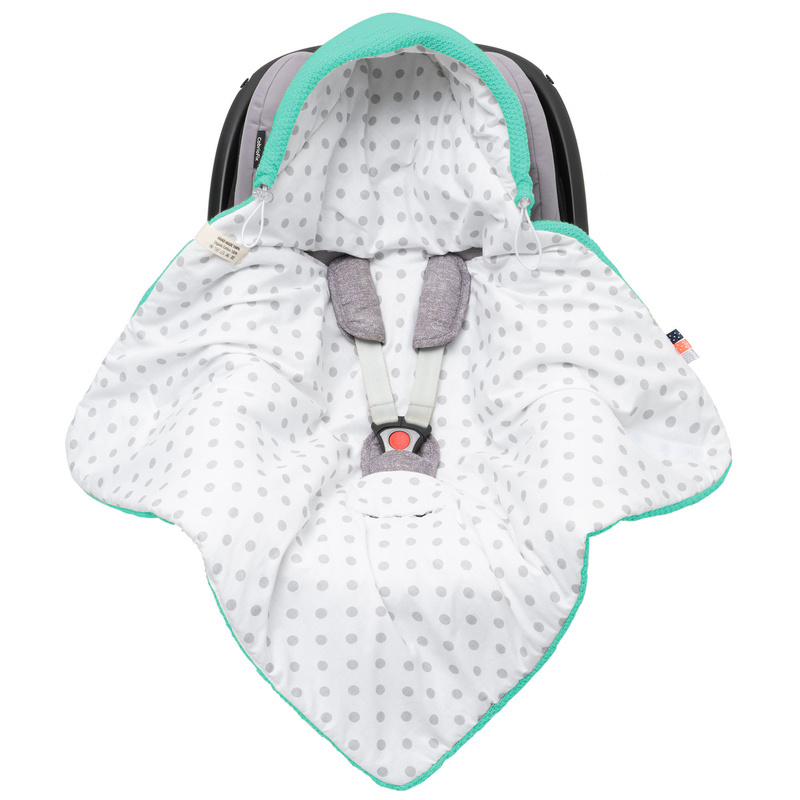 Mikos Kocyk do fotelika becik rożek niemowlęcy śpiworek otulacz z kapturem do fotelika samochodowego wózka nosidełka bawełna 1039 TURKUS