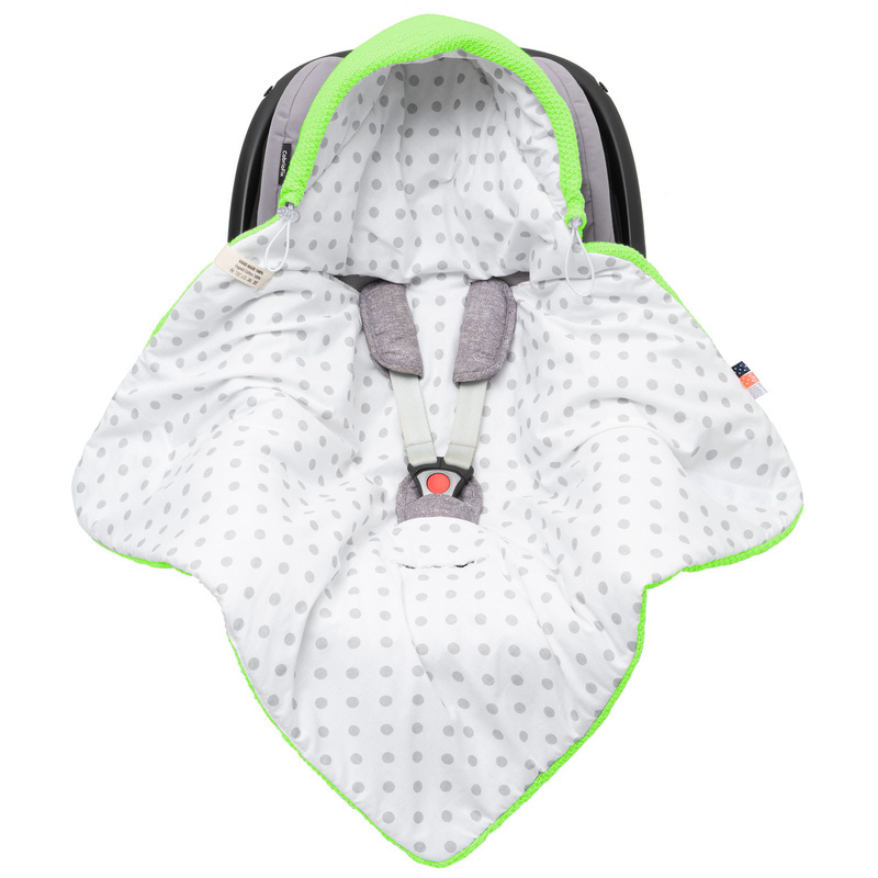 Mikos Kocyk do fotelika becik rożek niemowlęcy śpiworek otulacz z kapturem do fotelika samochodowego wózka nosidełka bawełna 1039 ZIELONY