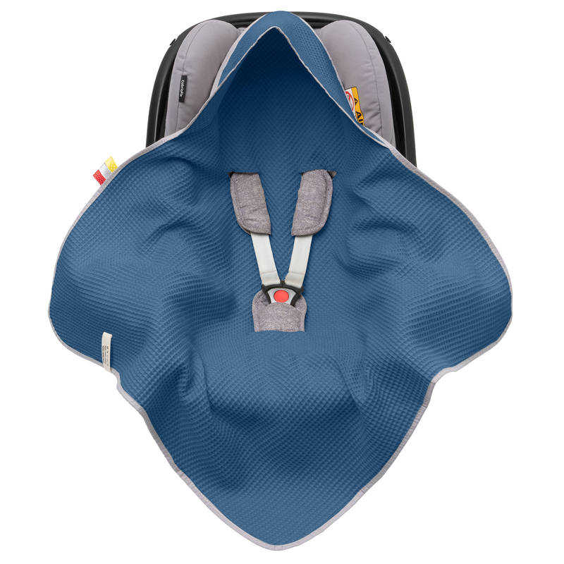 Mikos cienki Kocyk otulacz do fotelika samochodowego wiosna lato do auta samochodu wózka dziecięcego nosidełka Maxi Cosi 3-punktowy pasek 1038 JEANS