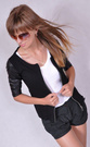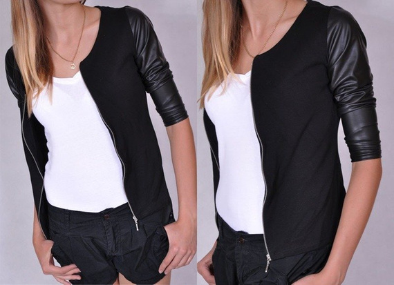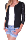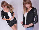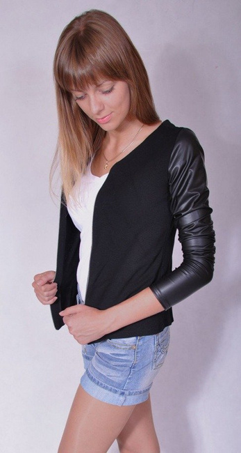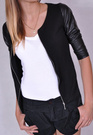 Świetna krótka marynarka, blezer ze skórzanymi rękawkami.