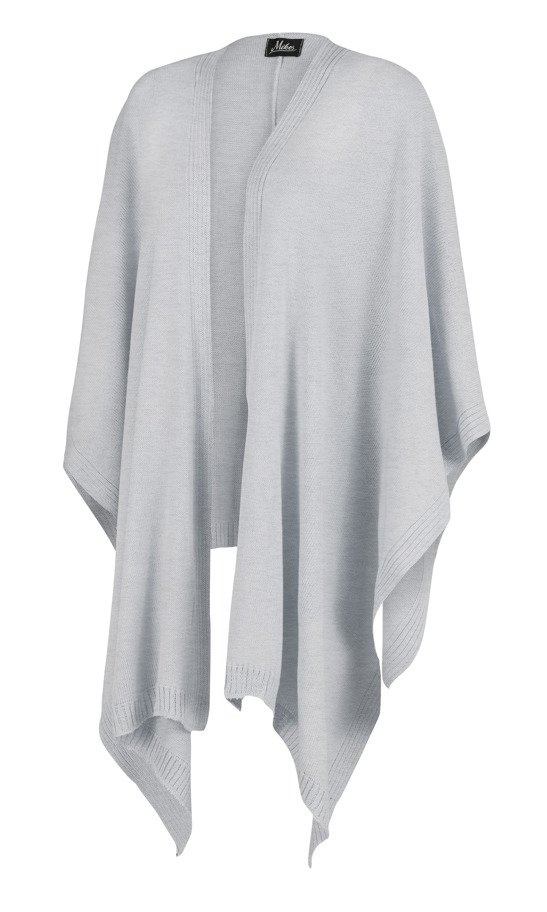 Długi sweter damski asymetryczny bez zapięcia długości do połowy uda typu ponczo.