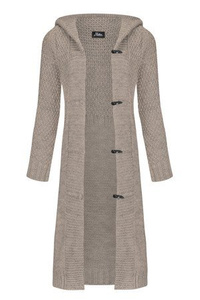 Mikos Damski długi sweter kardigan z kapturem 988 mokka