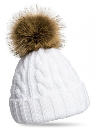 Mikos Damen Strickmütze mit Fellbommel Bommelmütze Zopfmuster oder Rippstrick mit großem Kunstfellbommel
