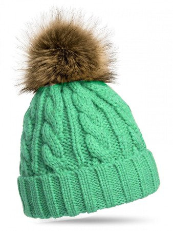 Mikos Damen Strickmütze mit Fellbommel Bommelmütze Zopfmuster oder Rippstrick mit großem Kunstfellbommel