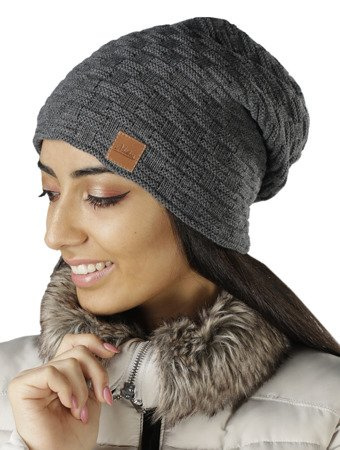 Mikos Damen Strickmütze mit Fellbommel Bommelmütze Zopfmuster oder Rippstrick mit großem Kunstfellbommel