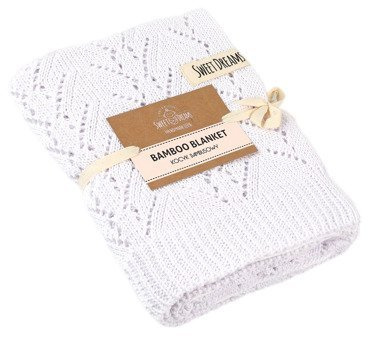 Mikos Kocyk bambusowy tkany dziecięcy dzianinowy dziergany 80x100cm. 1028 biały