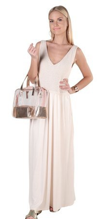 Mikos długa elegancka sukienka szydełkowa na ramiączka 380 beż
