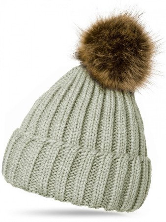 Mikos Polska ciepła Damska czapka zimowa na ferie w prążki gruby splot z dużym pomponem na narty polski producent polski produkt HAT 626P