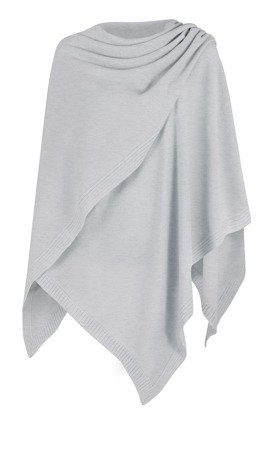 Długi sweter damski asymetryczny bez zapięcia długości do połowy uda typu ponczo.