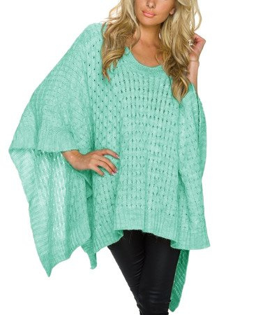 Mikos długi sweter damski ponczo asymetryczny oversize 676 miętowy
