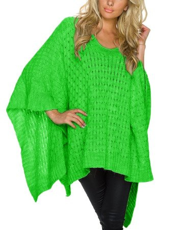 Mikos długi sweter damski ponczo asymetryczny oversize neon zielony 676