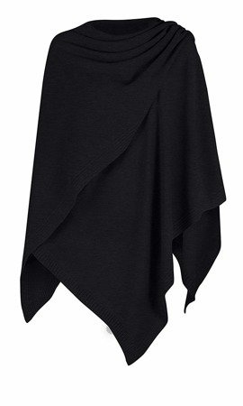 Długi sweter damski asymetryczny bez zapięcia długości do połowy uda typu ponczo.